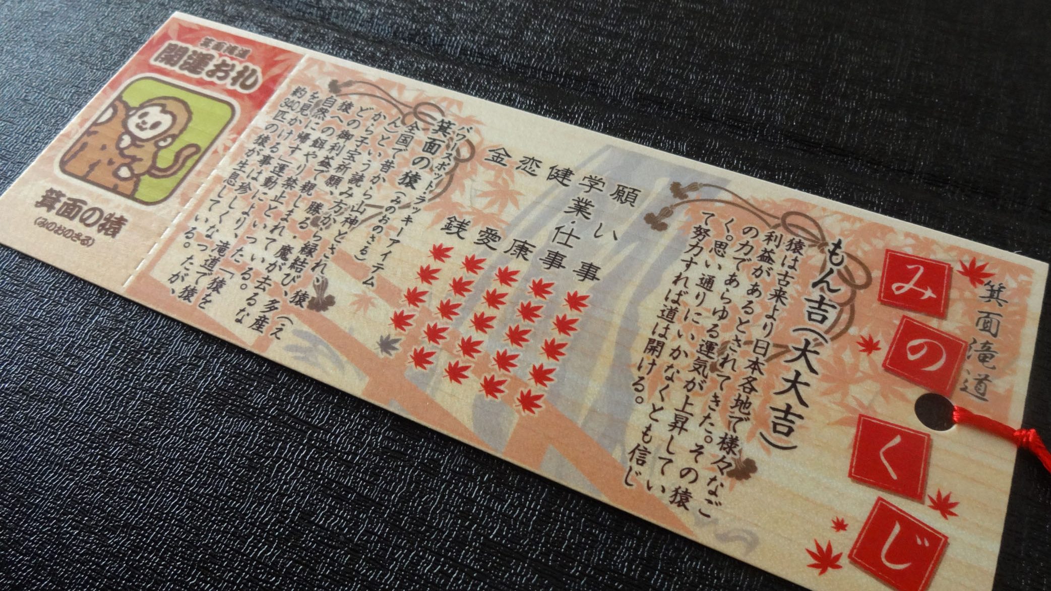 In Minokuji, the special local version of omikuji in Minoh, the highest possible fortune is 大大吉 Dai-daikichi (Double Great Blessing).